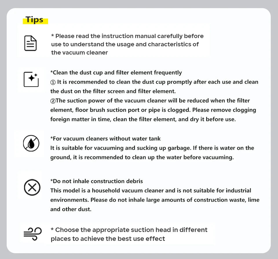 Various cleaning settings, smart suction with adjustable frequency, automatically changing based on the cleaning requirements and the level of dirt.
