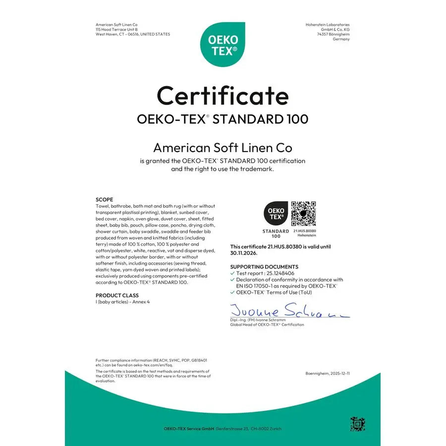 These Towels are OEKOTEX STANDARD 100 Certified and OEKOTEX STANDARD 100 keeps you and your family safe by testing each component of a certified product against a list of over 1,000 harmful substances.
