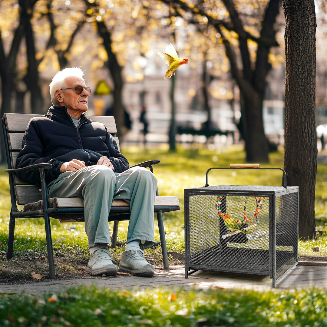 - Bird-friendly design with colorful hammock toys, a wooden perch, and thoughtful ventilation keeps your bird curious, relaxed, and active during travel or home time.