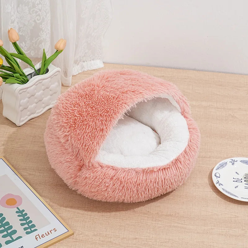 Winter Ultrasoft Plush Round Cat Bed 2 In 1 DeluxeNest